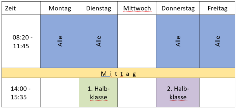 Anfang Juni 2024 senden wir Ihnen die Klasseneinteilung und die Anmeldung für die Tagesschule.